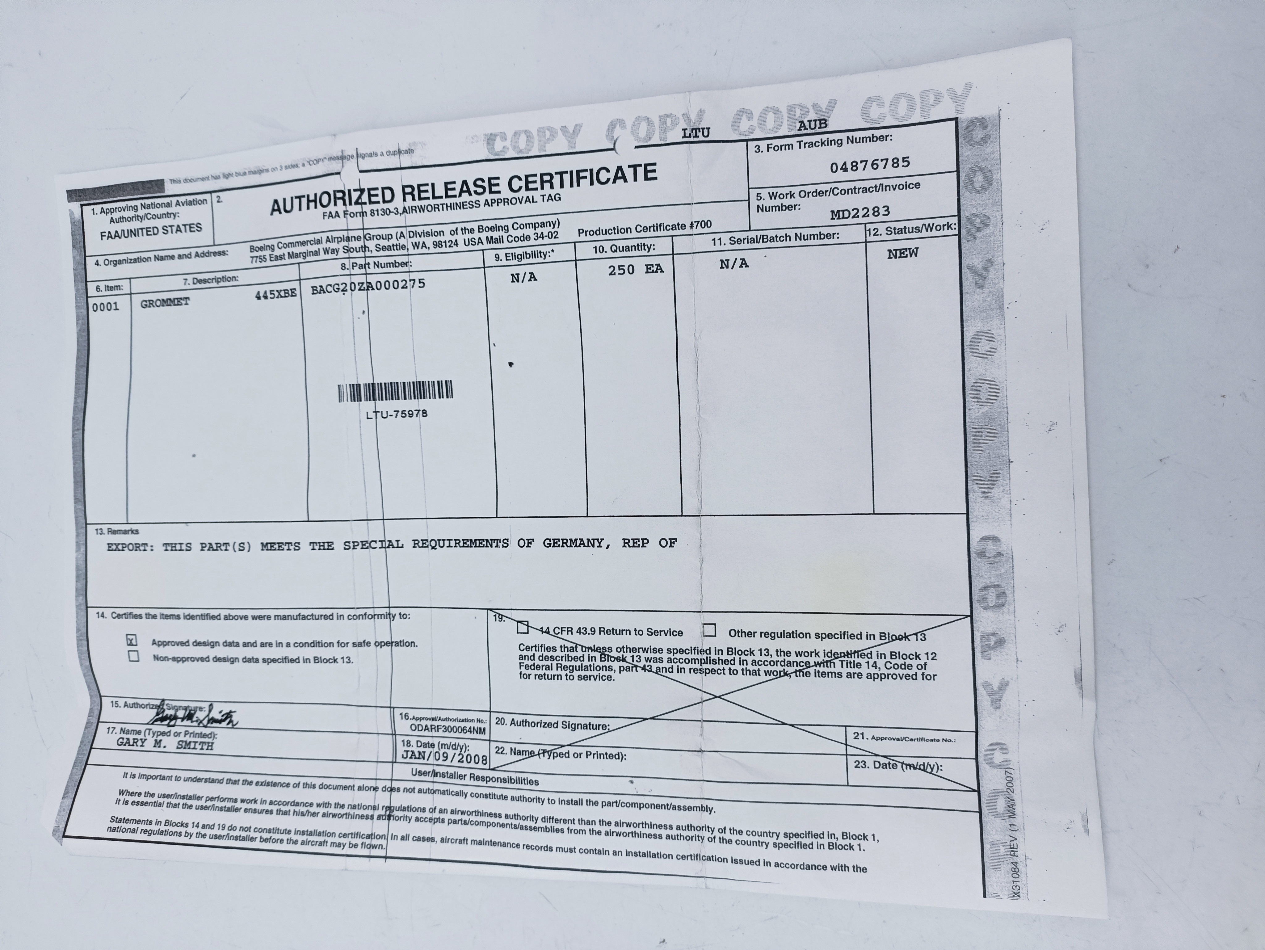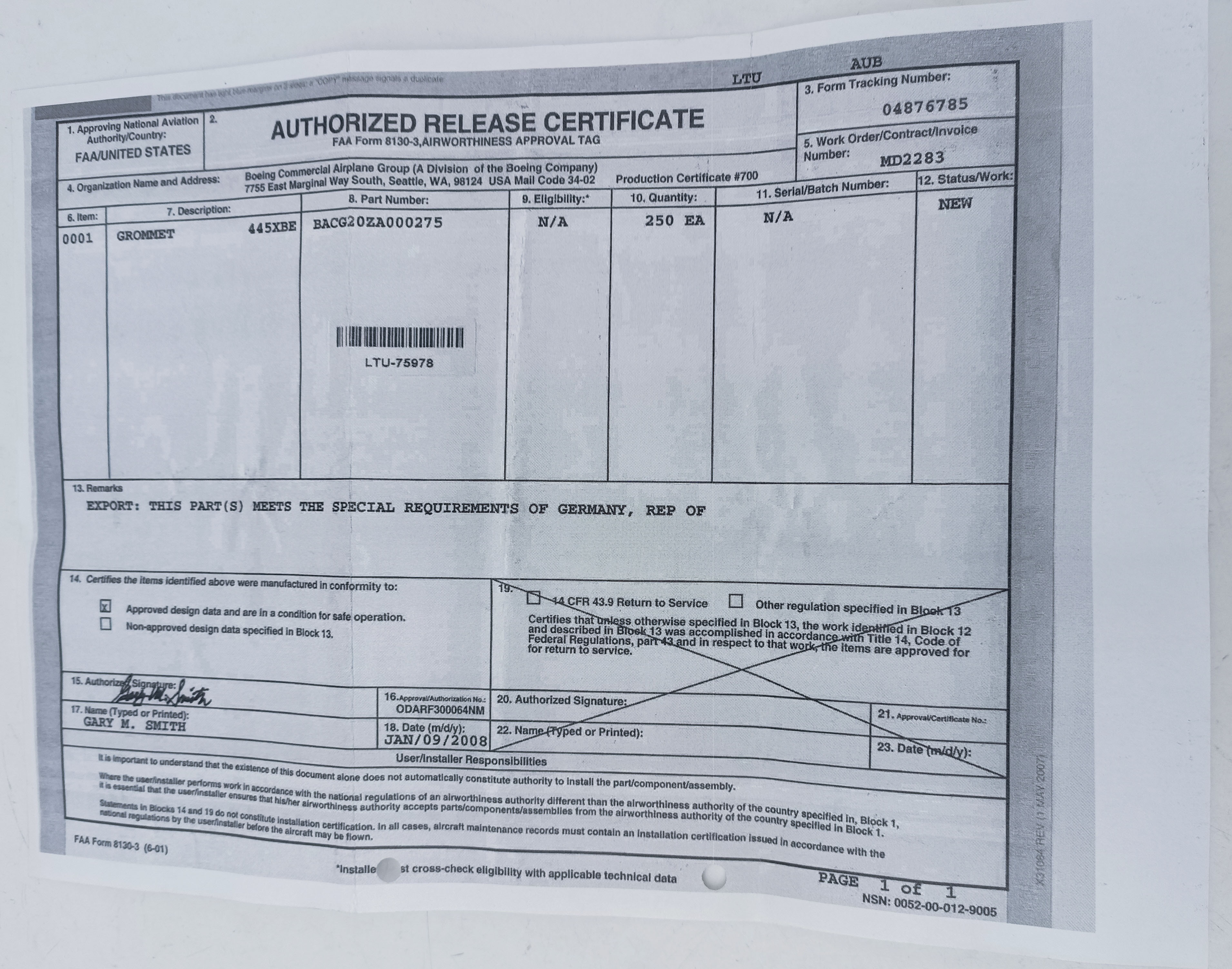 Уплотнение BACG20ZA000275 - это высококачественное уплотнительное кольцо, предназначенное для использования в авиационной технике Boeing. Оно обеспечивает надежную герметизацию соединений, предотвращая утечки жидкостей и газов. Изготовлено из прочных материалов, устойчивых к воздействию высоких температур и агрессивных сред.